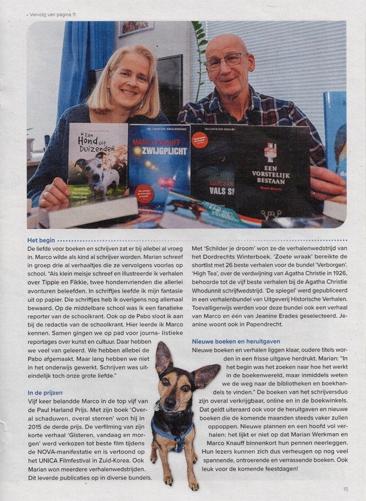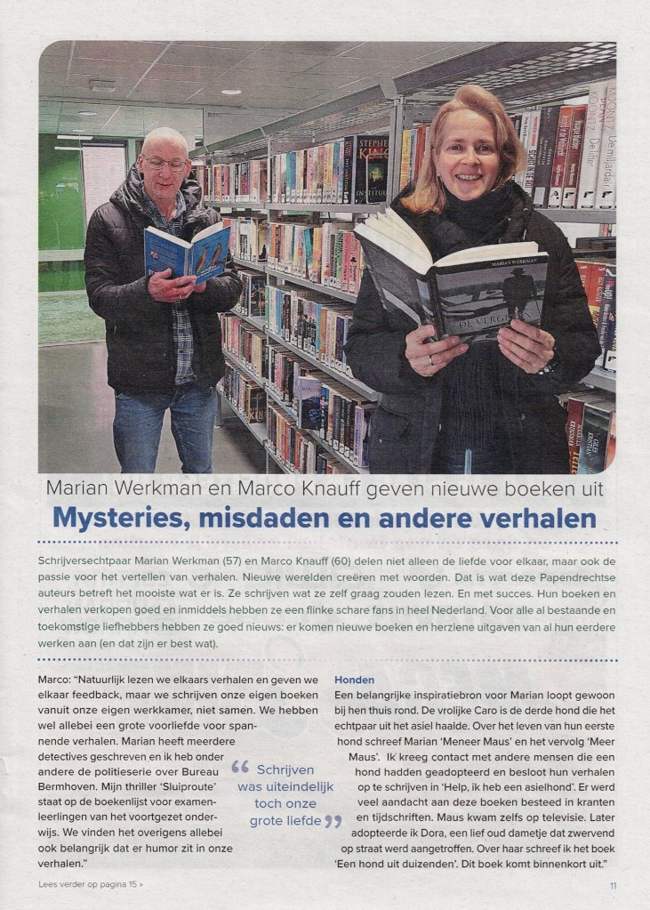 Schrijversechtpaar Marian Werkman (57) en Marco Knauff (60) delen niet alleen de liefde voor elkaar, maar ook de passie voor het vertellen van verhalen. Nieuwe werelden creëren met woorden. Dat is wat deze Papendrechtse auteurs betreft het mooiste wat er is. Ze schrijven wat ze zelf graag zouden lezen. En met succes. Hun boeken en verhalen verkopen goed en inmiddels hebben ze een flinke schare fans in heel Nederland. Voor alle al bestaande en toekomstige liefhebbers hebben ze goed nieuws: er komen nieuwe boeken en herziene uitgaven van al hun eerdere werken aan (en dat zijn er best wat).